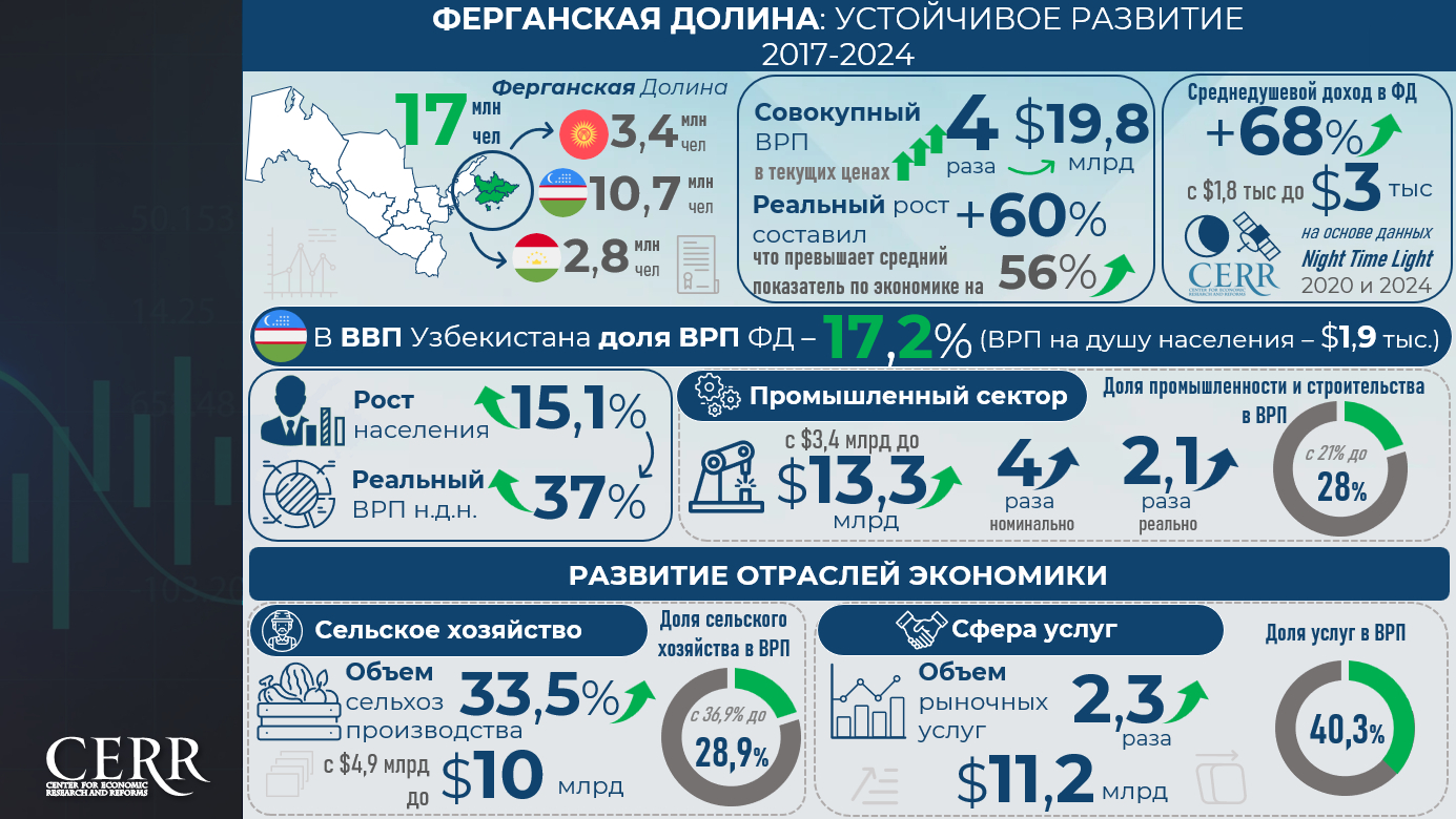В Узбекистане на территории Ферганской долины расположены Андижанская, Наманганская и Ферганская области (занимают около 4% территории страны), которые граничат с Согдийской областью Таджикистана, а также с Джалал-Абадской, Ошской и Баткенской областями Кыргызстана. Ферганская долина – пространство новых экономических возможностей Стоит задача превратить «мирный дивиденд» в устойчивый экономический рост, надёжные цепочки поставок, расширение торговли и инвестиций, повышение доходов и благосостояния, которое... ...
