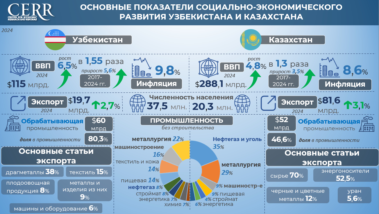 Сравнительный анализ показывает, что Узбекистан в последние годы демонстрирует более высокие темпы роста, структурную модернизацию экономики и расширение производственной базы.