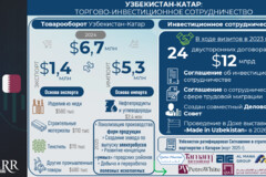 В ходе взаимных визитов 2023 года было подписано 24 двусторонних соглашения на общую сумму $12 млрд, включая Соглашение об инвестиционном сотрудничестве между Фондом реконструкции и развития Узбекистана и Катарским инвестиционным агентством (QIA), а также Соглашение о сотрудничестве в сфере трудовой миграции. Важным шагом стало создание совместного Делового совета «Узбекистан – Катар», который обеспечивает прямой диалог между деловыми кругами двух стран.