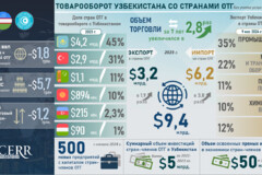 За указанный период доля стран ОТГ в товарообороте Узбекистана выросла с 16,5% до 17,1%, в экспорте снизилась с 19,1% до 16,7%, в импорте выросла с 14,4% до 17,4%.