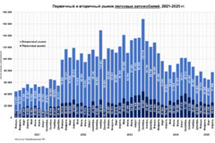 На первичном рынке легковых автомобилей продажи увеличились на 15% по сравнению с предыдущим месяцем, и составили 26 тыс. авто.
