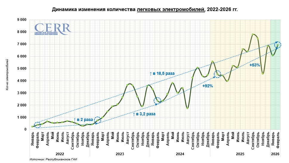Активность в сегменте легковых электромобилей продолжает демонстрировать устойчивый рост. В феврале продажи составили 6,9 тыс. единиц, что на 14% больше, чем в предыдущем месяце.