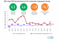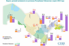 В марте 2023 года Индекс деловой активности (ИДА), рассчитанный Центром экономических исследований и реформ, составил 1042 пунктов, и, по сравнению с предыдущим месяцем, увеличился на 4,2%. А также отмечается 11-процентный рост ИДА по отношению к аналогичному периоду прошлого года.