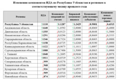| Самаркандская область | ↓999 | ↓0,9278 | ↑1,1605 | ↓0,9081 | ↓0,3448 |