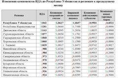 Изменения компонентов ИДА по Республике Узбекистан и регионам к предыдущему месяцу