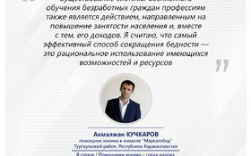 — До того, как я получил эту должность, работал инспектором в Налоговом управлении Учкурганского района Наманганской области. Я знаком с жизнью народа. Мой предыдущий опыт работы пригодился и в моей работе помощником хокима.