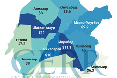 Одновременно ускорение темпов роста арендных ставок по сравнению с прошлым годом отмечено в Яшнабадском районе 16%, Сергелийском 13%, Юнусабадском 12%, Алмазарском 11% и Шайхантахурском 10% районах.