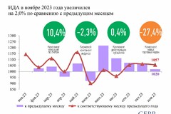 Индекс деловой активности в ноябре 2023 года увеличился на 2,0% по сравнению с предыдущим месяцем и составил 1020 пунктов, что объясняется изменениями нижеследующих компонентов: