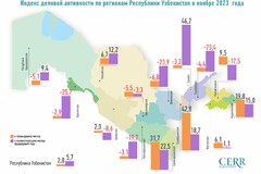 В ноябре 2023 года количество банковских операций между юридическими лицами, по сравнению с предыдущим месяцем, в 5 регионах увеличилось. В частности, в городе Ташкенте (15,2%), а также в Сырдарьинской (7,8%), Ферганской (5,9%), Андижанской (4,1%), Наманганской (0,2%) областях наблюдался рост.