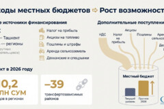 В результате в 2026 году совокупные доходы местных бюджетов увеличатся более чем на 10,2 трлн сум, а количество трансфертозависимых территорий сократится примерно на 39 единиц, что существенно снижает зависимость регионов от центра и повышает их финансовую устойчивость.
