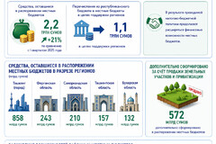 В результате проводимой налогово-бюджетной политики продолжают расширяться финансовые возможности местных бюджетов. В частности, средства, оставшиеся в распоряжении местных бюджетов, увеличились на 21% и составили 2,2 трлн сумов. Одновременно в целях поддержки регионов из республиканского бюджета в местные бюджеты было перечислено 1,1 трлн сумов.