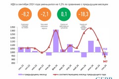 Индекс деловой активности в сентябре 2024 года показал умеренное снижение на 4,2% по сравнению с предыдущим месяцем и составил 958 пунктов, что объясняется изменениями нижеследующих компонентов: