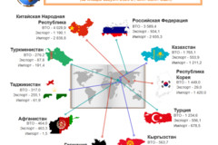 Наибольший объем внешнеторгового оборота зафиксирован с КНР (16,4%), Российской Федерацией (14,6%), Казахстаном (7,2%), Республикой Корея (5,9%), Турцией (5%), Кыргызстаном (2,3%) и Германией (2%).