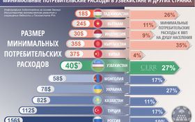 Уровень МПР в Узбекистане (440 тыс. сумов) составляет 27% от уровня ВВП на душу населения. Для сравнения, в Казахстане этот показатель равен 11%, в Турции 17%, в России 19%.