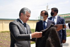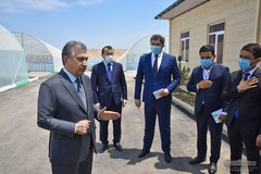 В ходе поездки в Наманганскую область глава государства ознакомился с проектом строительства комплекса теплиц на территории массива "Баланд адир" в Чартакском районе.