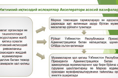 Ma’lumot uchun: Akseleratorning asosiy vazifasi bu - davlat organlari va tashkilotlari resurslarini jalb qilish orqali ijtimoiy-iqtisodiy rivojlanish sohasidagi dolzarb muammolarni jadallik bilan tezkor va samarali hal qilish hisoblanadi. Muammolarni hal qilish muddati odatda 100 kun etib belgilanadi va mazkur muddat davomida davlat idoralari, xususiy sektor va muammoga aloqador boshqa tomonlar ishtirokida Akselerator guruhi o‘z ishini olib boradi.
