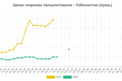 2021 yilning aprel oyida o‘tgan yilgi hosil narxi keskin ko‘tarildi. O‘zbekistonda o‘tgan yilgi sabzi narxi may oyi boshida cho‘qqiga chiqqanicha pasaymayapti, aksincha, sekinlik bilan bo‘lsa-da, o‘sishda davom etmoqda. Vaholanki, odatiy manzara boshqacha bo‘lishi lozim edi: bu yilgi hosilning bozorda paydo bo‘lishi va uning hajmi asta-sekin oshib borishi hech bo‘lmasa, o‘tgan yilgi sabzi narxlari o‘sishiga to‘sqinlik qilishi kerak edi.
