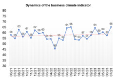 Iyul oyida ishbilarmonlik muhitining jamlangan ko‘rsatkichi o‘tgan oyga nisbatan 8 punktga ko‘tarilib, 65 punktni tashkil etdi, o‘tgan yilga nisbatan o‘sish 12 punktni tashkil etdi, bu mamlakatdagi ishbilarmonlik muhitining holatini ijobiy deb baholaydi.