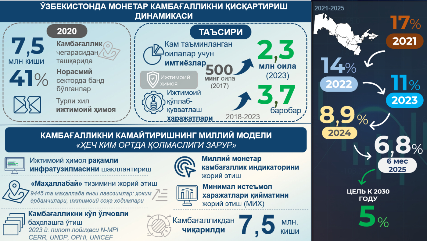 Infografika: 2017–2024 yillarda kambag‘allikni qisqartirish dinamikasi va islohotlar natijalari