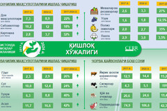 Qishloq xo‘jaligi mahsulotlarining 63 foizi dehqon va tomorqa xo‘jaliklari, 30 foizi fermer xo‘jaliklari va 7 foizi qishloq xo‘jaligi korxonalari tomonidan ishlab chiqarilmoqda.