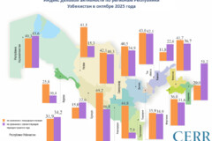2025 yil oktyabr oyida respublikaning 12 ta hududida yuridik shaxslar o‘rtasidagi bank operatsiyalari soni o‘tgan oyga nisbatan oshgan. Xususan, Sirdaryo (12,0 %), Qashqadaryo (10,2 %), Xorazm viloyati va Toshkent shahrida (7,8 %) o‘sish kuzatilgan.