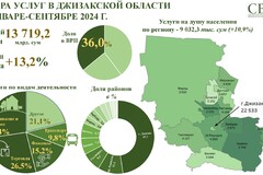 2024 yilning yanvar-sentyabr oylarida xizmatlar sohasida eng yuqori o‘sish sur’atlari G‘allaorol tumani (126,8%) va Jizzax shahrida (116,9%) hamda Zomin (112,6%) tumanlari hamda kuzatilgan.