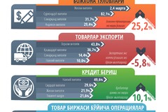 Oy davomida O‘zbekiston Respublika tovar-xom ashyo birjasida tuzilgan bitimlar 3,2%ga kamaydi. Birja faolligi o‘sishini ta’minlagan hududlar Sirdaryo viloyati (16,4%), Qoraqalpog‘iston Respublikasi (8,7%) va Toshkent (6,4%) bo‘ldi.