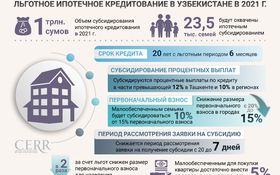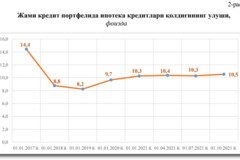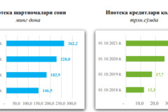 По данным регулятора, по состоянию на 1 октября 2021 года остаток ипотечных кредитов увеличился на 26,2% по сравнению с аналогичным периодом 2020 года – 32,8 трлн сумов.