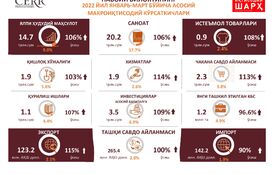 2022 yilning yanvar-mart oylarida viloyatning qishloq, o‘rmon va baliqchilik xo‘jaligi mahsulot (xizmat)larining umumiy hajmi 1 863,3 mlrd.so‘mni tashkil qildi.