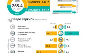 Shundan, dehqonchilik va chorvachilik va ushbu sohalarda ko‘rsatilgan xizmatlar – 1745,5 mlrd so‘mni (93,86%), o‘rmon xo‘jaligi - 83,3 mlrd so‘mni (4,47%) va baliqchilik xo‘jaligi sohalarda ko‘rsatilgan xizmatlar - 34,5mlrd so‘mni (1,85%) tashkil qildi.