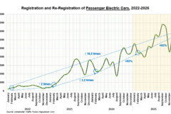 Yengil elektromobillar segmentida faollik barqaror o‘sishni davom ettirmoqda. Fevral oyida savdo hajmi 6,9 ming donani tashkil etib, bu o‘tgan oyga nisbatan 14 foizga ko‘p demakdir.