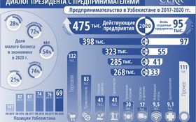 Umuman olganda, pandemiya davrida ushbu soha tomonidan yuzaga kelgan qiyinchiliklarga qaramay, kichik biznes va xususiy tadbirkorlik rivojining ta’sirchan sur’atlarini namoyon etmoqda. Shunday qilib, 2016 yilda ro‘yxatdan o‘tgan kichik korxonalar soni 278 mingta bo‘lsa, 2021 yilda 503 mingtani tashkil etdi. Ularning 258 ming nafari 2016 yilda faol bo‘lgan bo‘lsa, 2021 yilda 475 ming nafari faol bo‘ldi. 2016 yilda yangi tashkil etilgan korxonalar soni qariyb 28 mingtani, 2021 yilda esa 95 mingtani tashkil etdi. Prezident tadbirkorlar bilan uchrashuvda ta’kidlaganidek, o‘tgan besh yil davomida tadbirkorlar soni deyarli uch barobar ko‘payib, hozirda 1,5 million kishi bo‘lib turibdi, bu sohadagi korxonalarda besh millionga yaqin kishi mehnat qilmoqda.