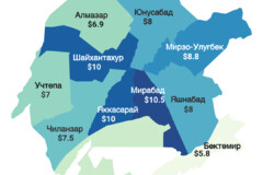 Poytaxtning Mirobod, Shayxontohur va Yakkasaroy tumanlarida ijara narxi yuqoriligicha qolmoqda. Ushbu tumanlarda ijara narxi bir kvadrat metr uchun o‘rtacha 10 dollarni tashkil etadi.
