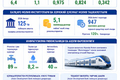 Hisobot davrida xorijiy investitsiyalar va kreditlar hisobiga 9,7 milliard dollarlik asosiy kapital yaratildi. Bu ko‘rsatkich o‘tgan yilga nisbatan 147,5 foizga o‘sganini ko‘rsatadi. Shu bilan birga, jami qiymati 1,2 milliard dollarlik 1 508 ta investitsiya loyihalari ishga tushirilib, qariyb 28 mingta yangi ish o‘rinlari yaratildi. Jumladan, Piskent tumanida “Qaratog‘” va “Boshtovoq” istiqbolli maydonlarini o‘zlashtirishning birinchi bosqichi, Paxtaobod tumanida trikotaj mahsulotlari ishlab chiqarish hamda Chirchiq shahrida katalizatorlar ishlab chiqarish loyihalari foydalanishga topshirildi.