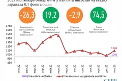 - товар-хом ашё биржасида хом ашё сотиб олиш жадаллиги 19,2фоизга ошган;