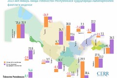 Шу билан бирга ушбу кўрсаткич 8 та ҳудудда камайган. Хусусан, Навоий (- 26,9%), Қашқадарё (- 8,1%) вилоятлари ва Тошкент шаҳрида (- 7,4%) ўтган ойга нисбатан сезиларли даражада камайиш кузатилган.