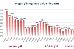 Oy davomida esa oziq-ovqat mahsulotlari narxlari o‘rtacha 1,3 foizga oshdi. Ushbu davrda, nooziq-ovqat mahsulotlar narxlari 0,5 foizga, aholiga pullik xizmatlar narxlari 0,7 foizga o‘sdi.