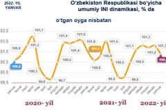 Yanvar oyidagi inflyasiya darajasi o‘tgan oyga nisbatan 0,1 foizga, yillik ko‘rsatkich esa 2021 yilning mos davriga nisbatan 1,8 foizga pastlagan.